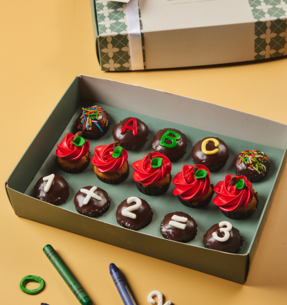 Cupcakes e chocolate, plátano y zanahoria con decoración de grajeas y frosting (5 unidades c/u).